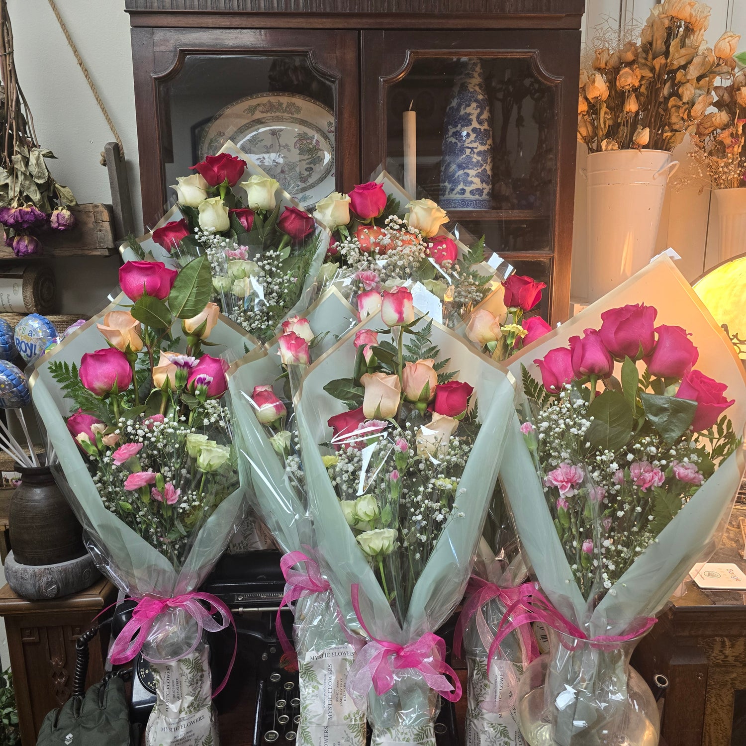 Check our Instagram account "mysticflowerscanada" to view photos of the flower arrangements we delivered to our customers