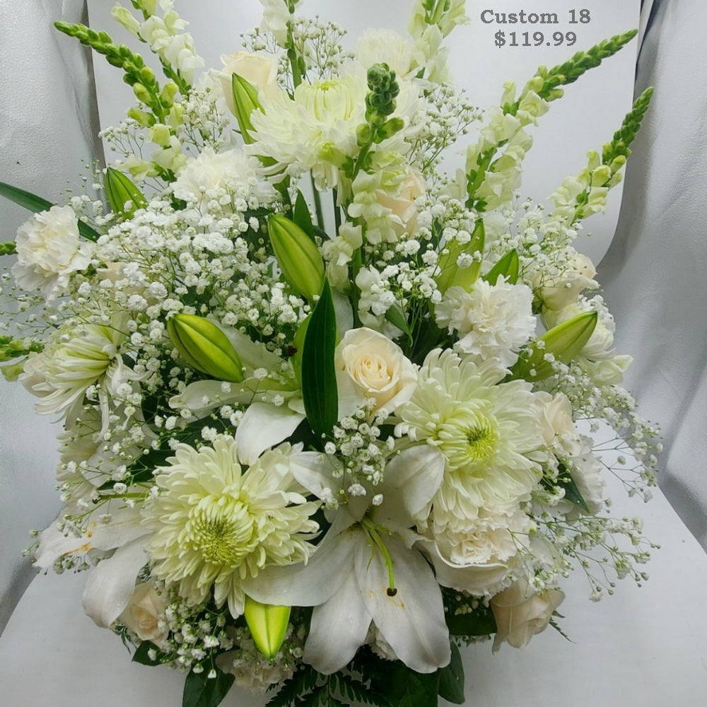 Color of the flowers and the size of the arrangement can be modified to meet your needs and the budget.