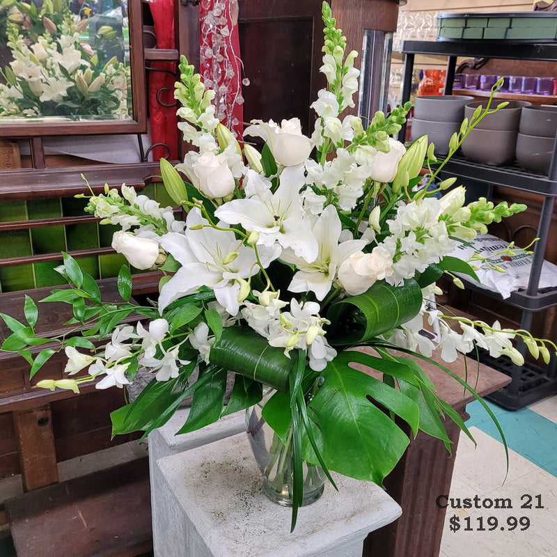 Color of the flowers and the size of the arrangement can be modified to meet your needs and the budget.