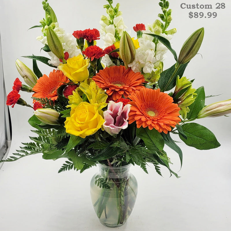 Color of the flowers and the size of the arrangement can be modified to meet your needs and the budget.
